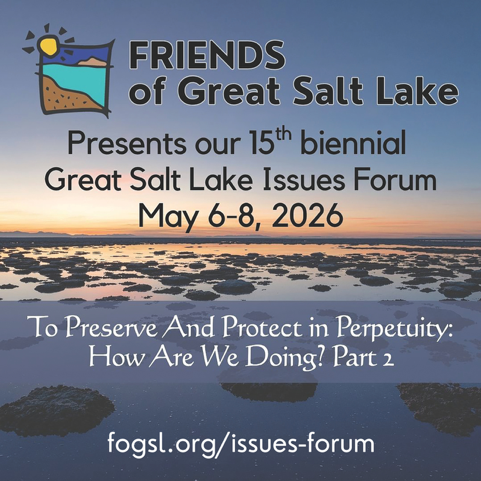 The time is ripe to bring people together to engage in responsible and productive discussions about Utah’s water future and how Great Salt Lake is included in that work. The future of Great Salt Lake is now and the 2026 Great Salt Lake Issues Forum is an opportunity to spotlight that. Join us!